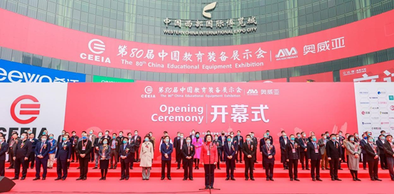 10月23日,由中國教育裝備行業(yè)協(xié)會(huì )主辦的第80屆中國教育裝備展示會(huì )在成都中國西部國際博覽城盛大開(kāi)幕,中國關(guān)心下一代工作委員會(huì )副主任、教育部紀檢組原組長(cháng)田淑蘭宣布開(kāi)幕;教育部關(guān)心下一代工作委員會(huì )常務(wù)副主任、第80屆中國教育裝備展示會(huì )組委會(huì )主任王富,中央和國家機關(guān)工委行業(yè)協(xié)會(huì )商會(huì )黨建工作部一級巡視員劉巖,教育部體衛藝司副司長(cháng)、一級巡視員劉培俊,四川省教育廳黨組書(shū)記、廳長(cháng)鄒瑾,成都市委常委、市政府黨組成員劉筱柳,四川省教育廳黨組成員、副廳長(cháng)張瀾濤等出席開(kāi)幕式,教育部相關(guān)司局(單位)領(lǐng)導,中國教育裝備行業(yè)協(xié)會(huì )領(lǐng)導,各省市相關(guān)領(lǐng)導和代表,部分參展企業(yè)代表參加開(kāi)幕式。1300余家企業(yè)參展,展出面積20萬(wàn)平方米。并同期舉辦專(zhuān)業(yè)論壇、學(xué)術(shù)會(huì )議、成果交流等30余場(chǎng)活動(dòng)。